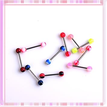 8pcs Pack Stainless Barbell Nail Tongue Piercing Solid Color Nipple