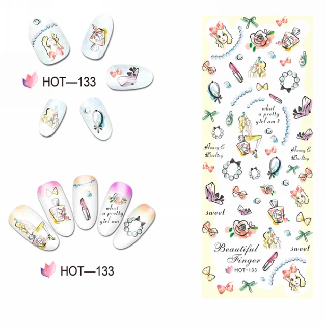 Uprettego Nail Art Beauty Water Decal Slider Nail Sticker Triple