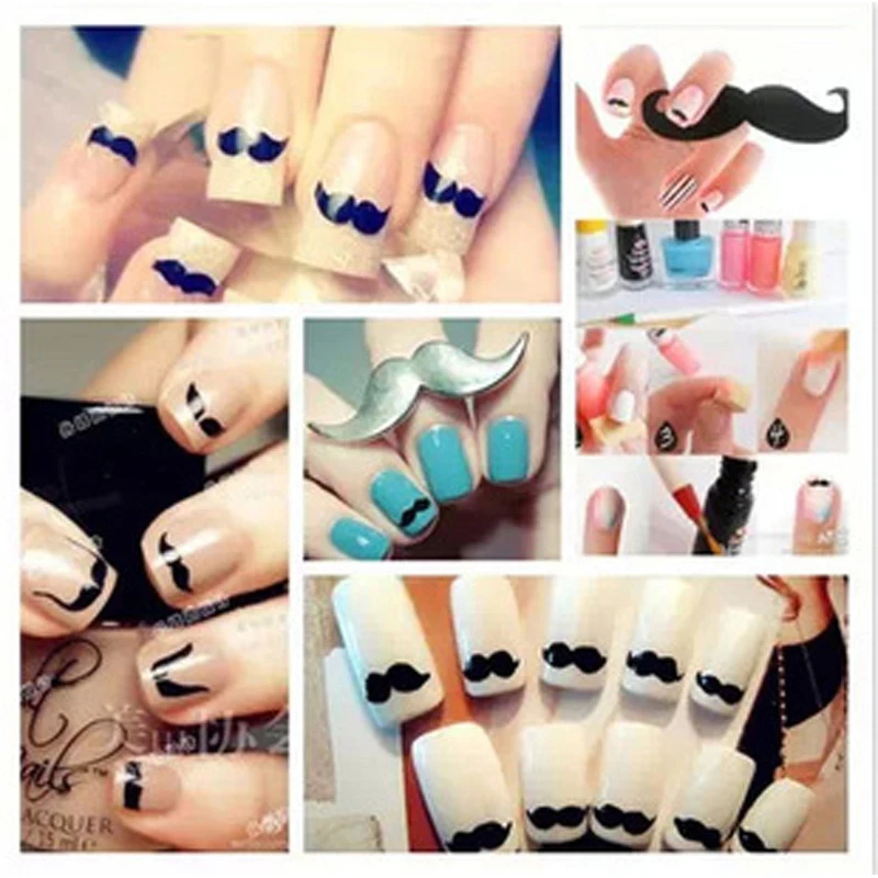 3d Nail Art Cute Black Beard Nail Decals Top Coat To Nails For
