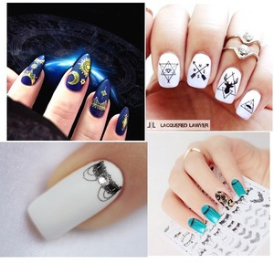 3d Nail Art Stickers Tattoos Black Lace Star Moon Beard Theme Decals