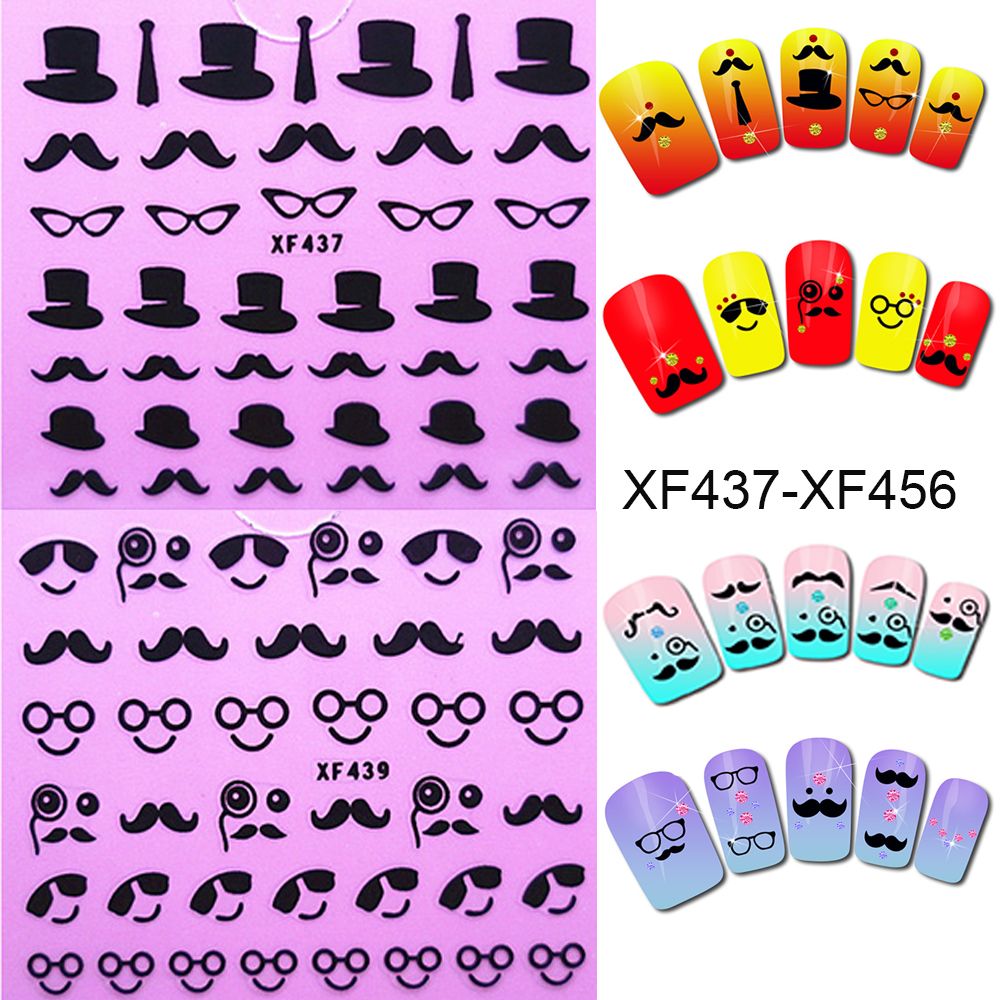 Huang 2pcs Beard Nail Art Stickers Mixed Pattern No 01 02 Amazon Co