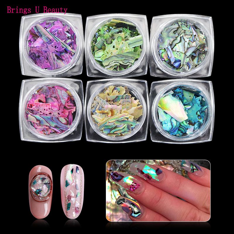 6 Colors Lot Natural Texture Abalone Shellfish Sea Shell 3d Charm Nail Art Decoration Slice Diy Beauty Salon Nail Decals Tools