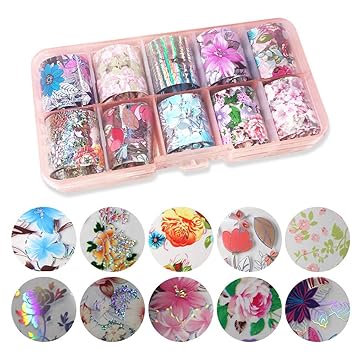 10 Rolls Laser Holographic Nail Foil Sticker Colorful Flower Starry Sky