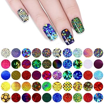 Amazon Com 50 Sheet Shimmer Colorful Starry Sky Nail Art Stickers