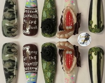 Beetlejuice Artificial Nail Setmovie Nail Art Hand Painted Etsy