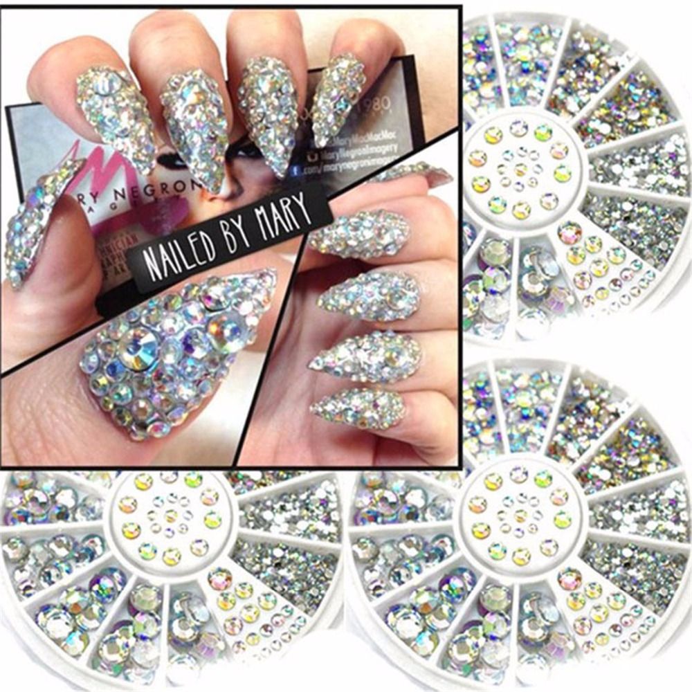 1 Case Crystal Rhinestones Nails Tips Clear Ab No Hot Fix Glue Diy