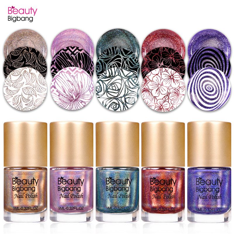 Beautybigbang 9ml Holographic Nail Stamping Polishes Printing Varnish Lacquer For Nail Art Lasting Laser Polish Permanent