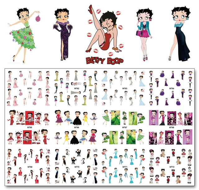 Nail Art 12 Sheets Lot Mt61 72 Colorful Betty Boop Nail Art Water