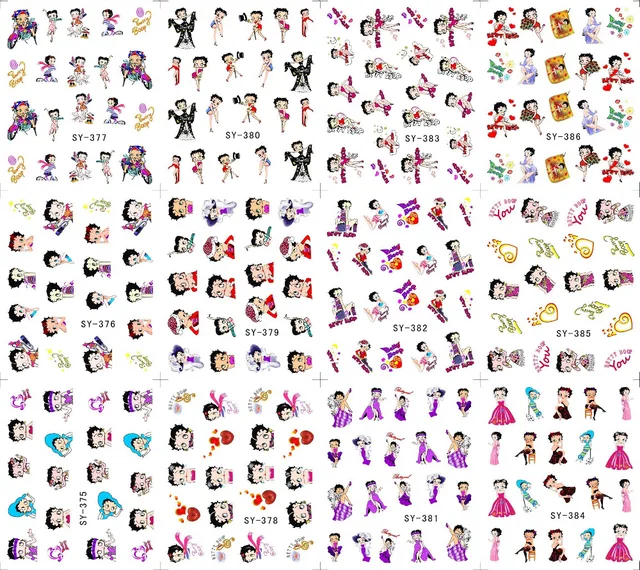 12 Sheets Lot Nail Art Sy375 386 Cartoon Betty Boop Mixed 12 Designs