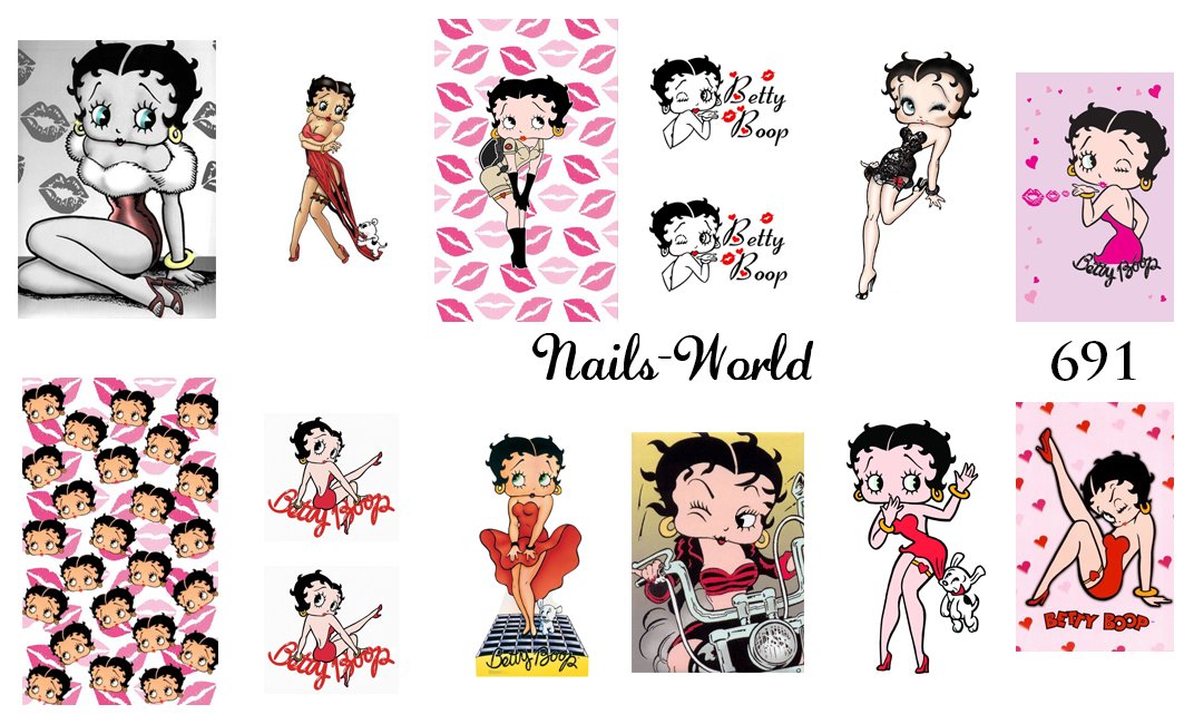 Nail Art Large Piece Sy375 386 12 Designs In 1 Cartoon Betty Boop