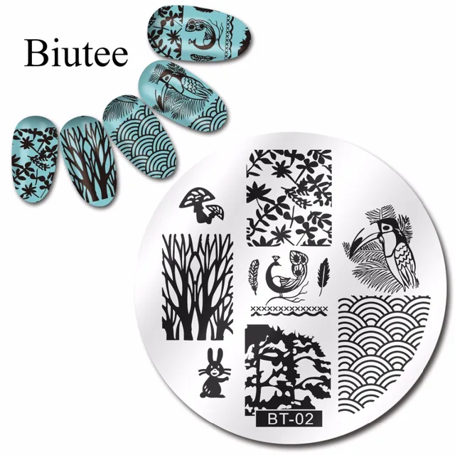 Biutee Nail Art Stamping Template Image Plate Bird Peacock Rabbit