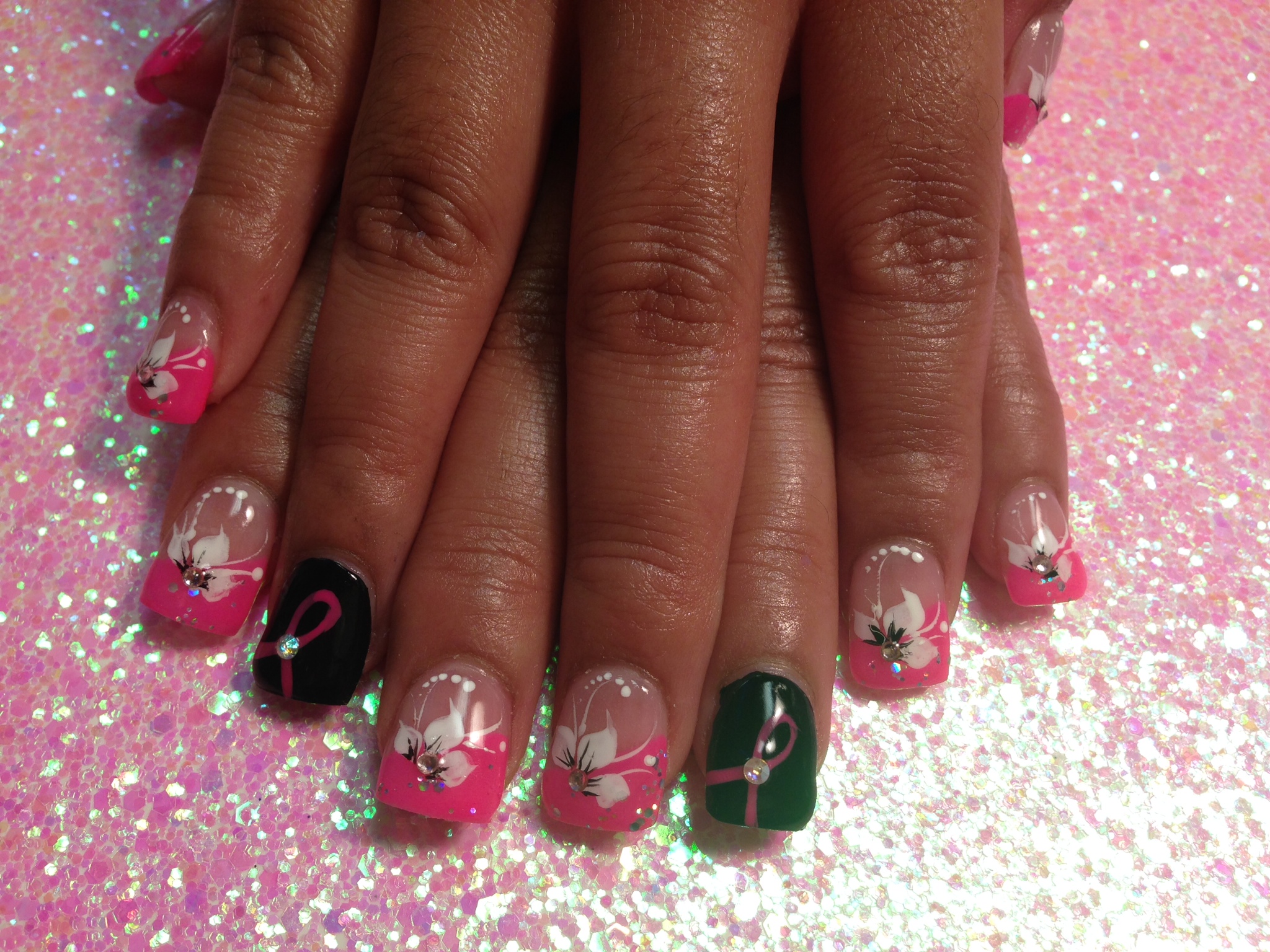 Breast Cancer Awareness Pink Black Nail Art Gallery