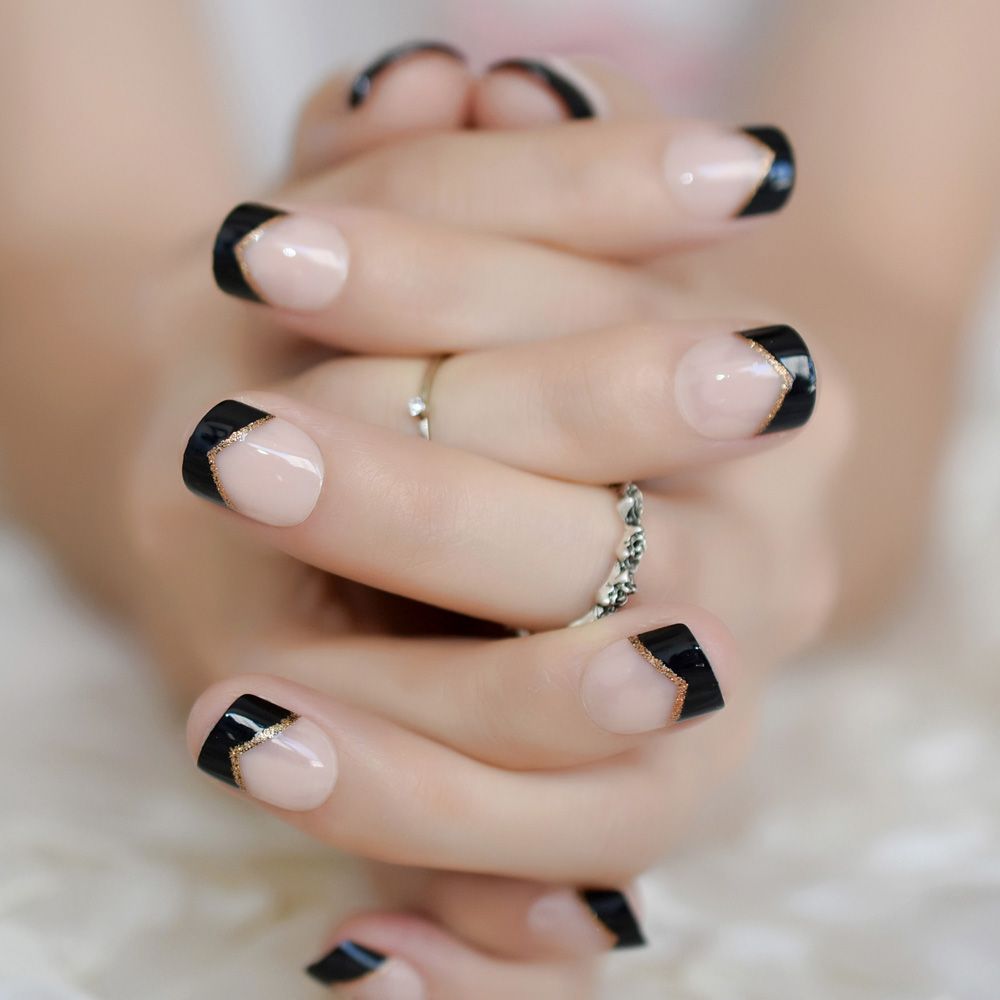 Shine Fake Nail Tips Black French Lady Nails Clear Moo Nail Art