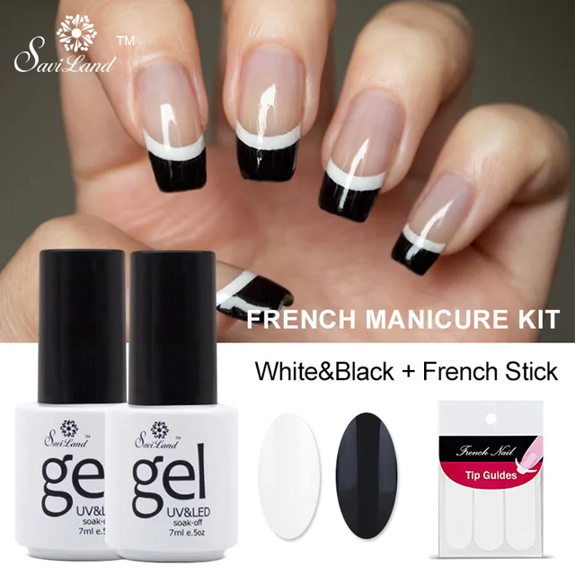 Saviland 2pcs French Manicure Set Nail Art Black White Uv Gel Nail