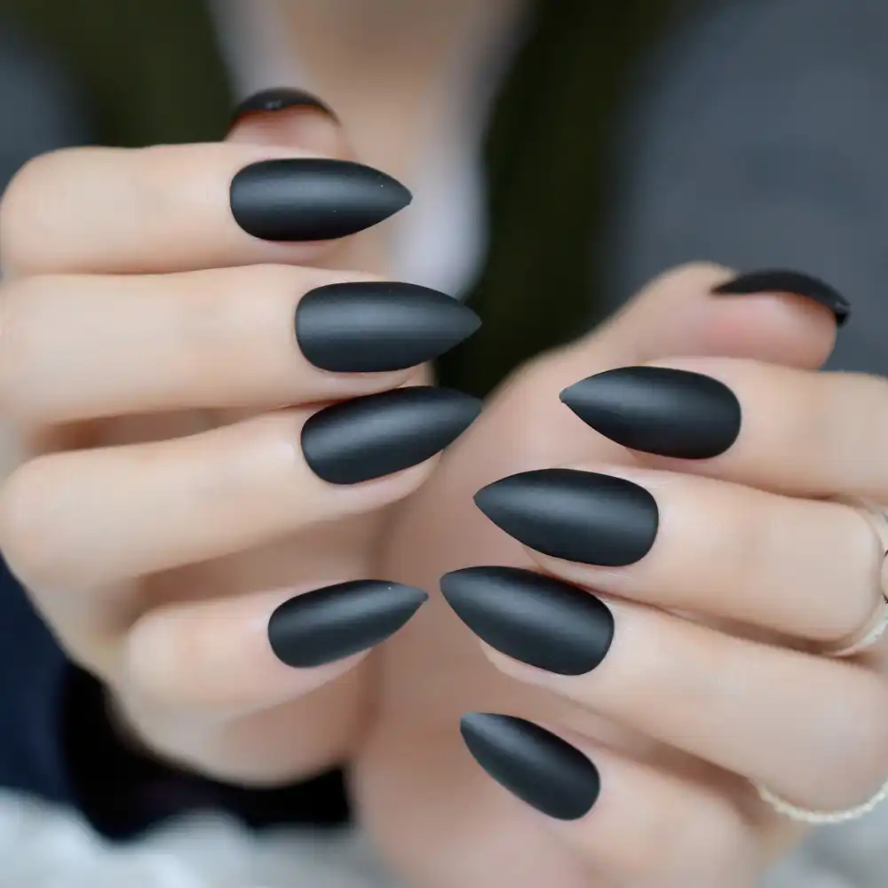 Detail Feedback Questions About 24pcs Pure Black Stiletto Nail Art