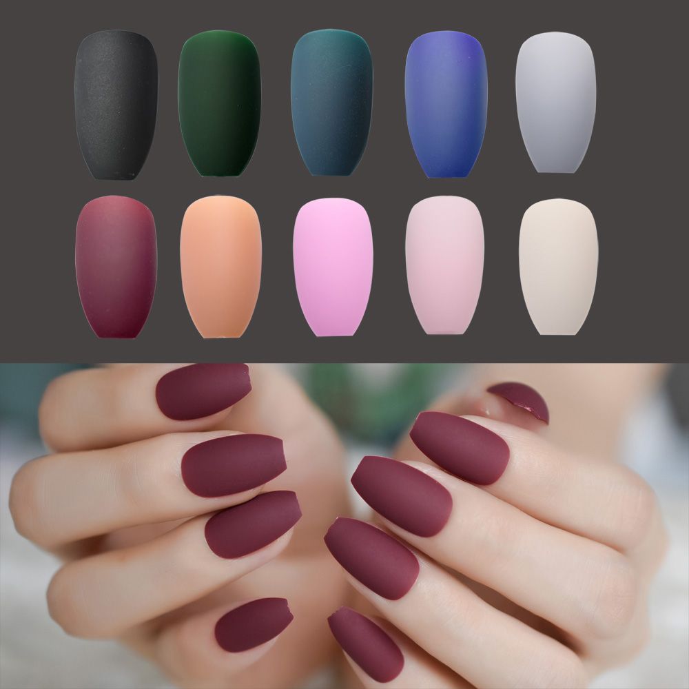 Matte Ballerina Nail Art Tips Burgundy Blue Black Green False Coffin