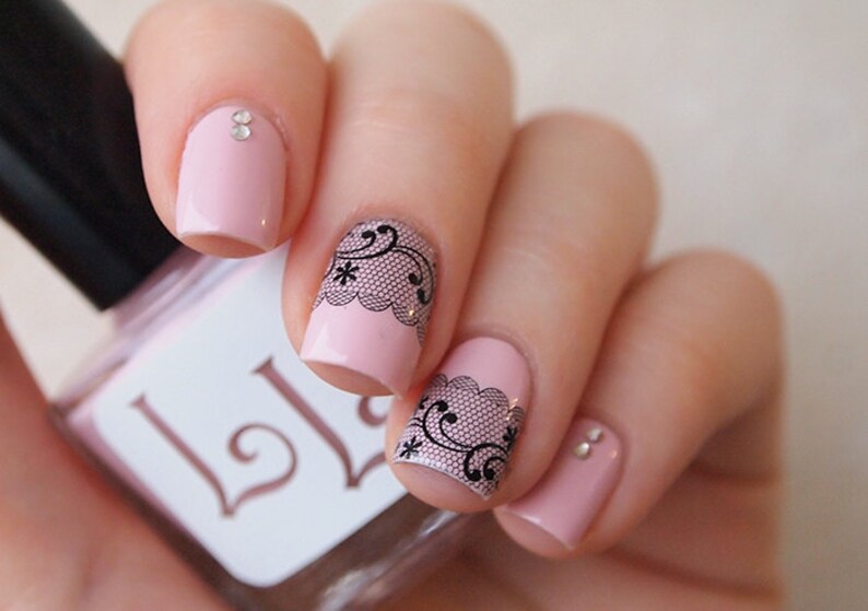 Nails wraps nail art water transfers decals black lace fishnet nail tips y795 see more like this 4100 cm black lace starry sky design nail art foil stickers transfer decal tips brand new. Black lace netting acrylic nail art tutorial duration. The black lace on nude nails lace design is a good design for the people who are in a hurry and cannot afford to wait for many coats to dry. Be careful not to break them since they were sculpted thinner than normal.
