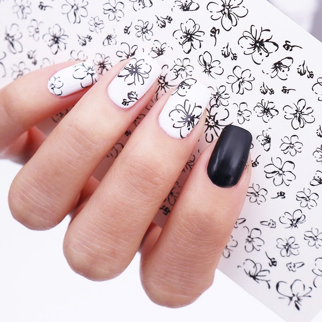 Black Line Flower Water Decals Nail Art Transfer Stickers Simple