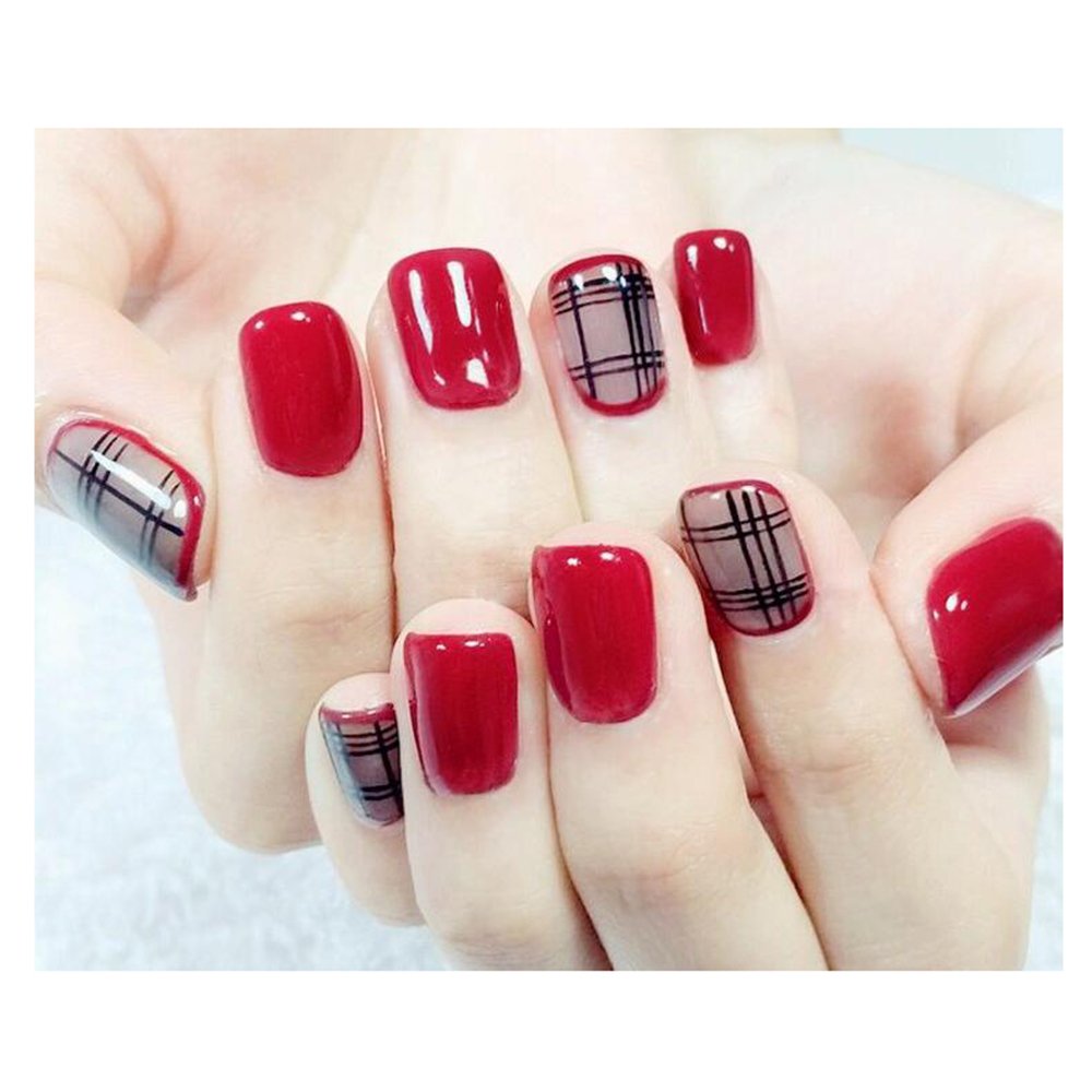 Amazon Com Dongcrystal 24 Pcs Deep Red With Black Line Fake Nail