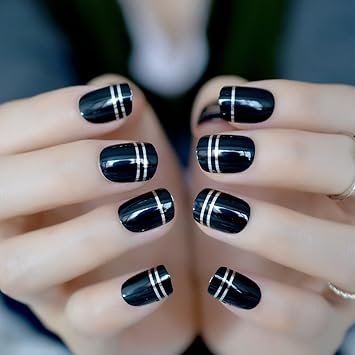 Wholesale Simple Black White Line Trending Style Nail Art False Fake