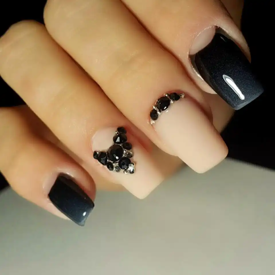 Black Matte Nails With Rhinestones Nail Art Gallery