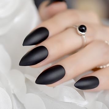 Amazon Com 24pcs Pure Black Stiletto Nail Art Medium Pointed Salon