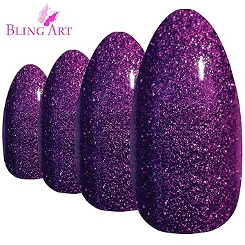 Amazon Com False Nails Bling Art Almond Fake Stiletto Gel Purple