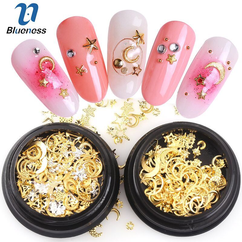 Blueness Nail Studs 3d Nail Art Decoration Japanese Style Gold Moon