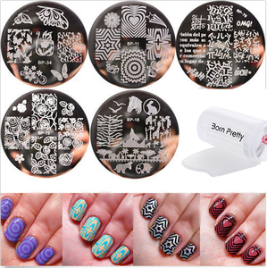6pcs Set Born Pretty Nail Art Stamping Plate Stamper Scraper