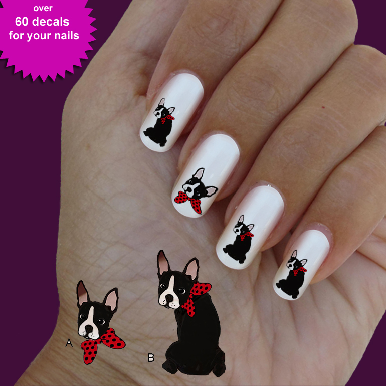 Boston Terrier Nail Art Nail Decal Set Of 60 Waterslide Nail