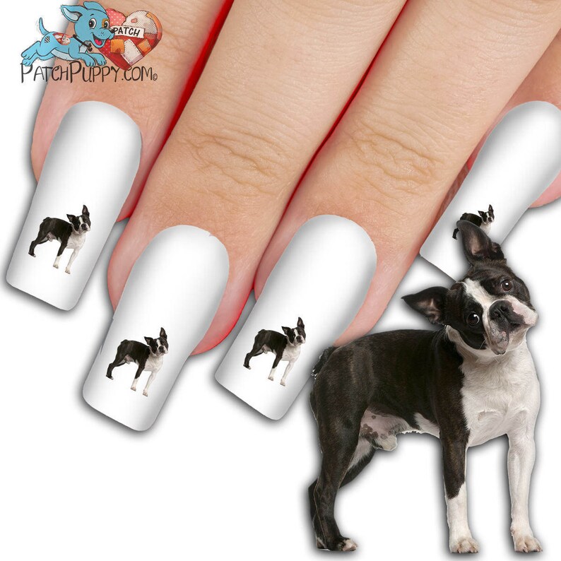 Boston Terrier Nail Decal Dog Nail Art Canine Terrier Nail Etsy