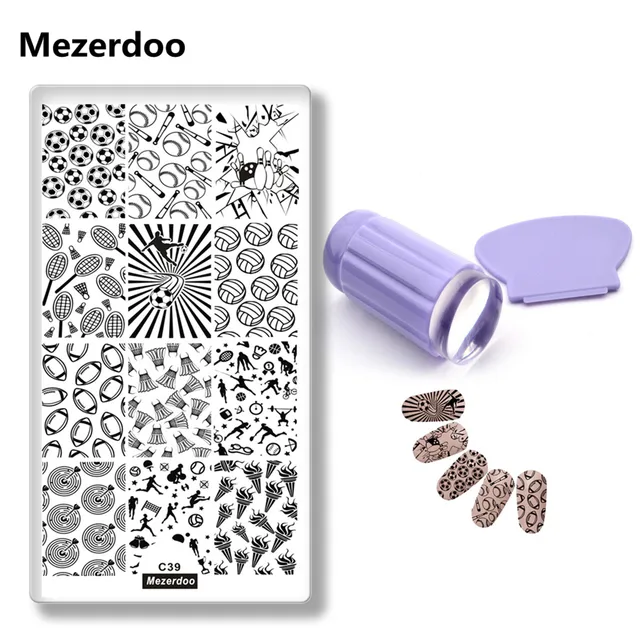 Purple Stamper Stamping Nail Plate Set Sport Design Football Bowling
