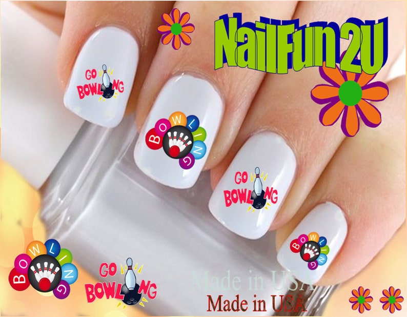 Sports Nail Decals Bowling 1 Go Bowling Pins Nail Etsy