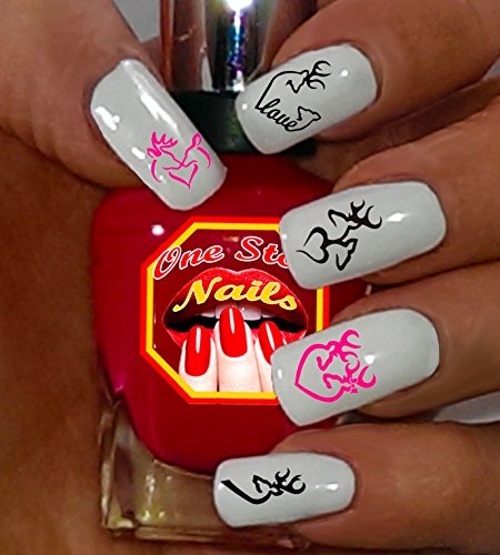 50pc Love Hearts Browning Love Country Pink Camo Deer Nail Decals