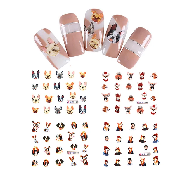 11 Sheets Cute Dog Nail Art Decals Bulldog Mixed Water Transfer