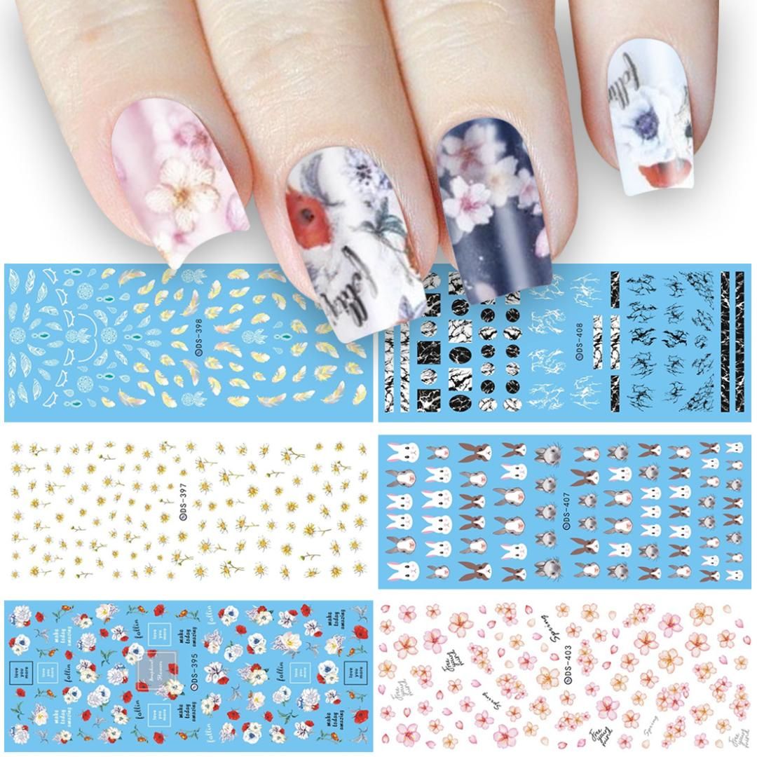 Marble Flower Design Decalsdaisy Rose Rabbit Feather Manicure Bunny