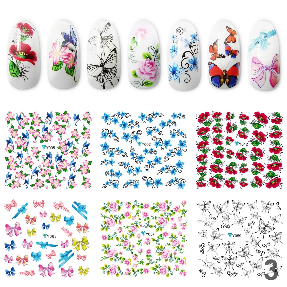 Us 2 99 50 Off Promotion New Arrival Mixed Color Nail Art Stickers Flower Butterfly Nail Wraps 6pcs Lot Water Transfers Stickers In Stickers
