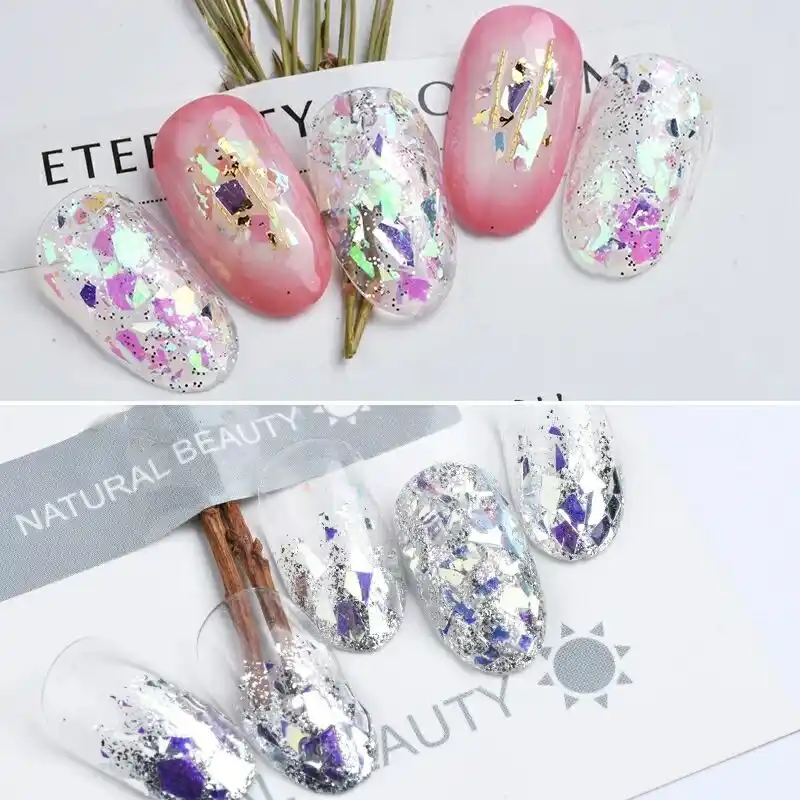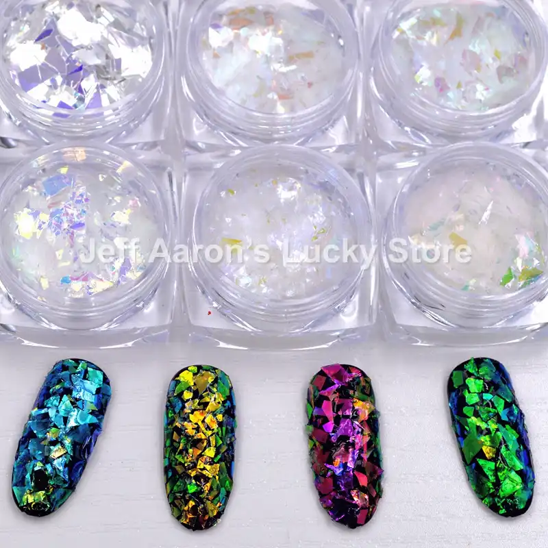 6 Whtie Ab Colors Glitter Nail Ice Mylar Shell Foil Irregular Nail