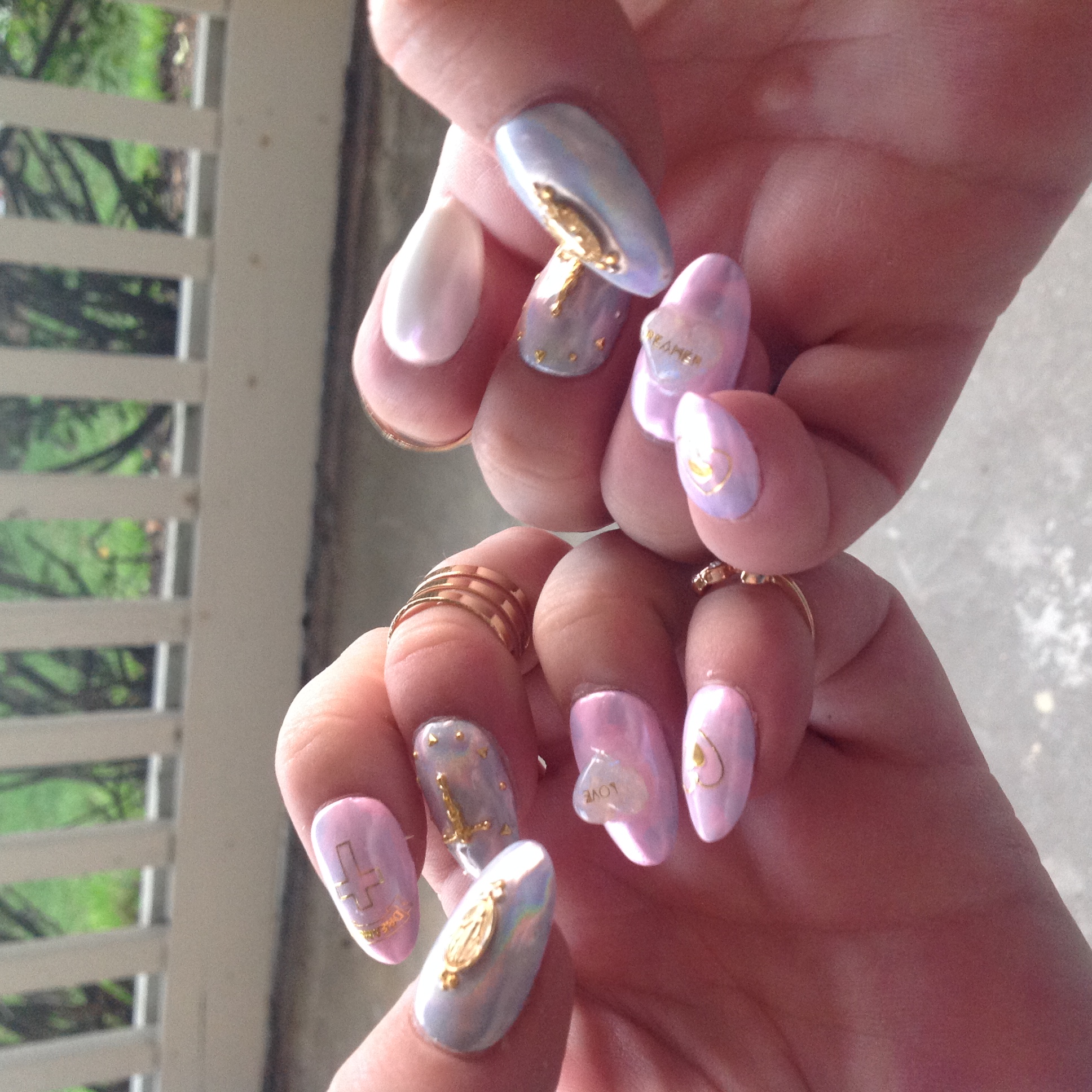 Pastel Goth Iridescent Tie Dye Catholic Cross Crucifix Theme Gel