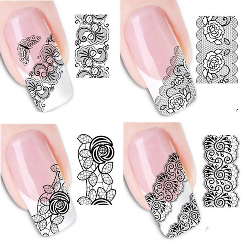 20pcs Mixed Fashion Sex Black Lace Vine Charm Nail Art Stickers