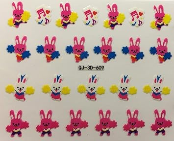 Amazon Com Nail Art 3d Decal Stickers Cheerleader Bunny Rabbit