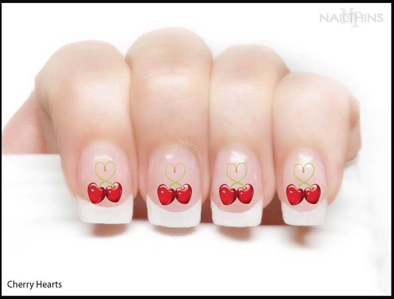 Cherry Nail Decals Cherries Nail Art Red Cherry Nail Wraps Etsy