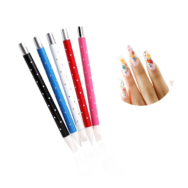 5pcs Sets Nail Art Tool Pen Brush Soft Silica Gel Carved Flowers