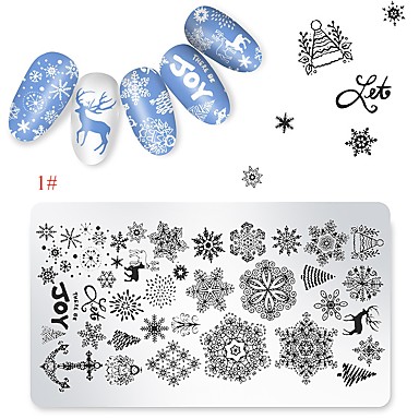 Cici Sisi Christmas Nail Art Stamping Plates Kit Stamp Plate Manicure Diy Template 4 Pieces Let It Snow