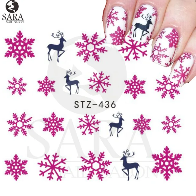 Us 0 32 21 Off Nail Salon 1sheet Xmas Christmas Nail Art Water Decals Pink Snowflake Snowman Transfer Stickers Sastz436 In Stickers Decals From