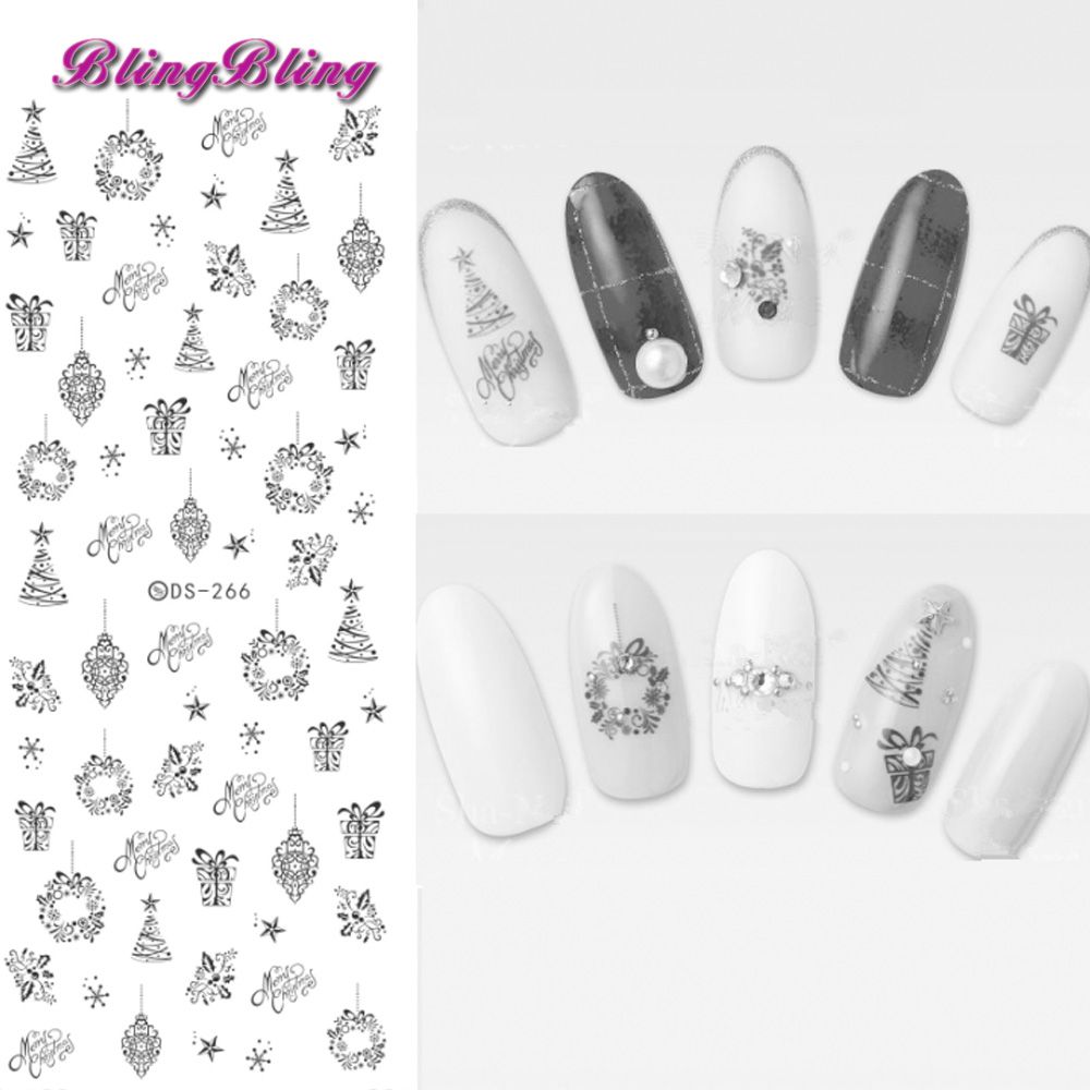 Blingbling 2pcs Christmas Nails Art Sticker Grey Snowflake Water Decals Xmas Winter Nail Stickers Wraps Foil Sticker Manicure