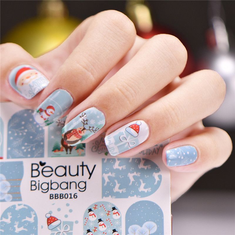 Beautybigbang 1 Sheet Xmas Christmas Nail Stickers Deer Snowman Image Water Decals Nail Art Decoration Stickers Bbb016