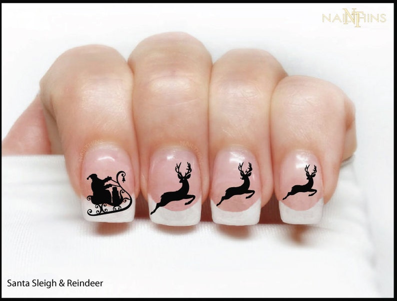 Santa Sleigh And Reindeer Holiday Nail Decals Christmas Nail Etsy