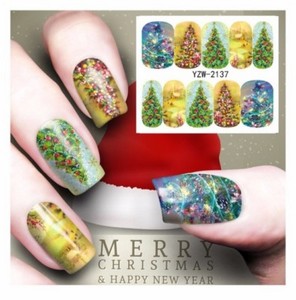 New 2018 Christmas Tree Lights Nail Art Sticker Decal Manicure Water