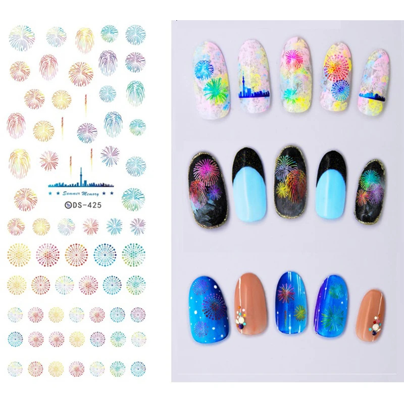 1 Sheet Colorful Fireworks Water Decal City Skyline Nail Art
